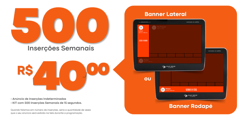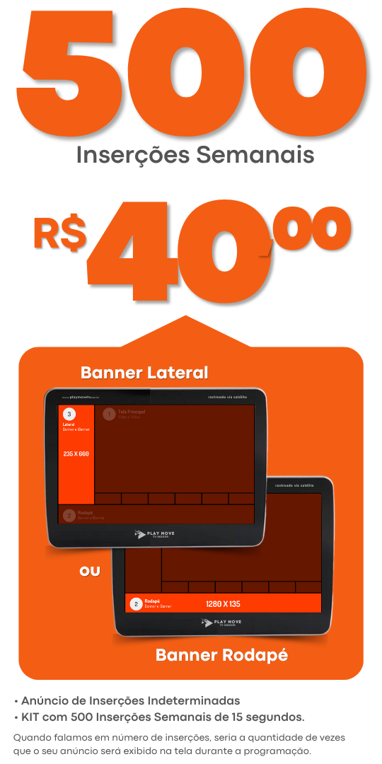 Quando falamos em número de inserções, seria a quantidade de vezes que o seu anúncio será exibido na tela durante a programação.